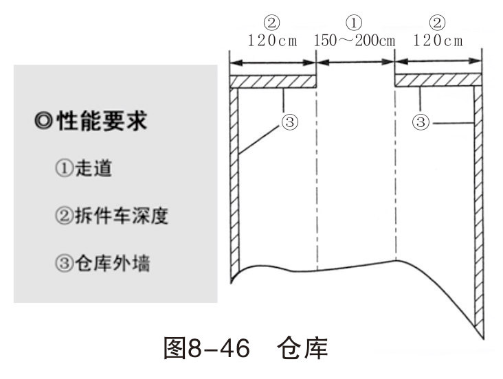 一個好的鈑金作業區,必須要有一個良好的板件拆卸零件和材料倉庫來配合,使整個廠區整潔。倉庫面積大約是鈑金工位的2~3倍即可。如圖8-46所示。