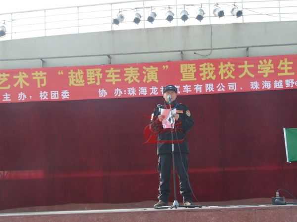 12月5日龍神公司與廣東科學(xué)技術(shù)職業(yè)學(xué)院聯(lián)合“越野e族”舉辦“第十七屆大學(xué)生文化藝術(shù)節(jié) 越野車文化交流表演暨大學(xué)生就業(yè)創(chuàng)業(yè)基地建設(shè)啟動(dòng)儀式在廣科院校園隆重召開。此次大學(xué)生文化藝術(shù)節(jié)由廣科院校團(tuán)委主辦,龍神公司、越野e族協(xié)辦,出席此次活動(dòng)的分別來(lái)自珠海,江門,中山,順德,澳門的越野e族朋友共八十多輛高級(jí)越野車參與;在緊張刺激的汽車轟鳴聲中拉開了序幕。