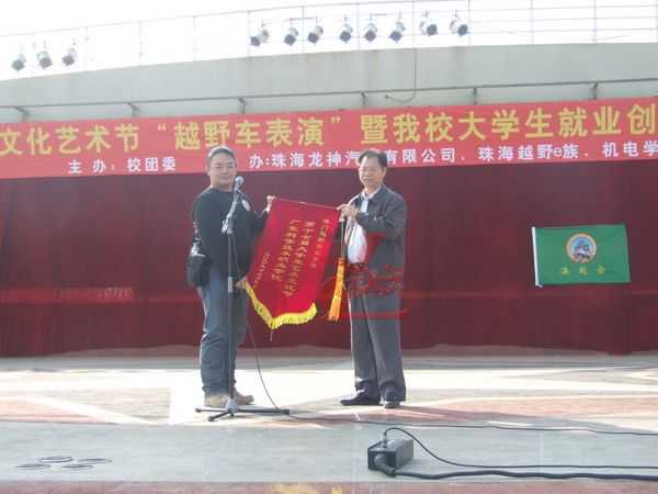 開幕式上龍神彭總發(fā)表慷慨激昂的講話,回顧了龍神公司與廣科院三年的良好合作,并表示將帶動(dòng)所在行業(yè)和企業(yè)為大學(xué)生指引和提供更多的就業(yè)創(chuàng)業(yè)機(jī)會(huì),共同發(fā)揚(yáng)越野精神、建設(shè)汽車文化,使之成為華南地區(qū)甚至全國(guó)范圍的高職學(xué)生精神文明和文化建設(shè)的亮點(diǎn)。隨后宣布了大學(xué)生就業(yè)創(chuàng)業(yè)基地建設(shè)和澳門四驅(qū)會(huì)成立啟動(dòng)儀式,龍神公司和澳門四驅(qū)會(huì)分別向廣科院贈(zèng)送錦旗,多采多藝的大學(xué)生文藝匯演給會(huì)場(chǎng)增添了眩麗的色彩,在越野酷車展示中,車主們自信的介紹著自己的愛車,車模們也對(duì)車主的酷車贊嘆不已!交流會(huì)上,大學(xué)生們爭(zhēng)先恐后與越野車主們交淡著汽車改裝的心得,從中更加深入的了解四驅(qū)越野車的獨(dú)特改裝性能,在校園里到處都充斥著關(guān)于越野車改裝的氛圍。