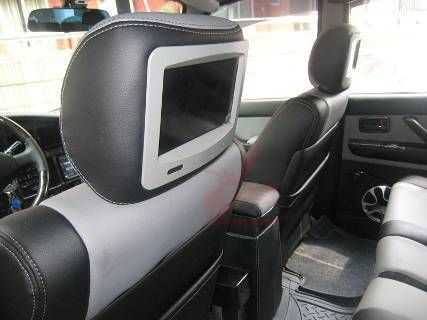 前排頭枕,兩個顯示器,完全為后排乘客而備! 全部用進口真纖包裹,不管是耐用性還是耐磨性,我們所用的這個真纖都超過5星真皮,當然價格也貴過5星真皮