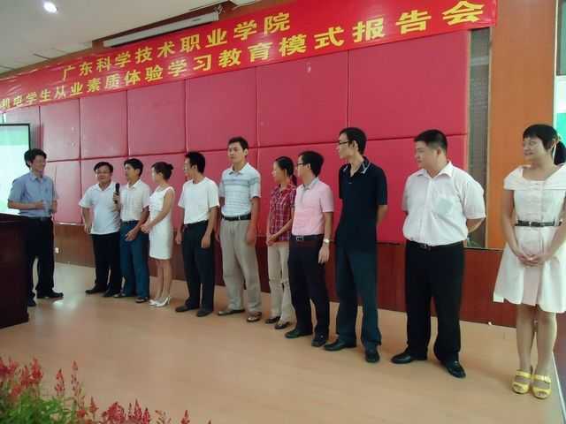 龍神在“廣科院”舉辦第一屆大學生從業素質教育學習班--簡報 9月16日,珠海龍神素質教育部莊政憲生先在廣科院--機電學院舉辦了為期三天的大學生從業素質教育學習班。 在學習活動中,通過各種小活動有效的提高了學生們的學習熱情“在活動體驗在,體驗中反思,在反思中提升”是此次學習班主旨。 報告會莊老師主講 報告會現場 莊老師與學校老師領導一起交流 王老師帶領學生互相認識組建團隊 體驗活動之后的主題收獲 學生分享課程收獲與行動方案 學生們自己組織團隊 培養主人意識體驗活動---“空中接龍” 體驗主題打造卓越團隊的體驗活動---“終極任務” 李老師帶領學生針對體驗活動進行反思分享 王老師帶領學生針對體驗活動進行反思分享 珠海市龍神有限公司領導與莊老師、廣東科學技術職業學院領導、學生合照 2010-09-27 10297