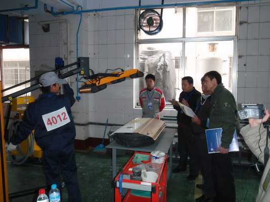 各代表隊(duì)選手利用龍神公司提供的鈑噴設(shè)備進(jìn)行實(shí)操