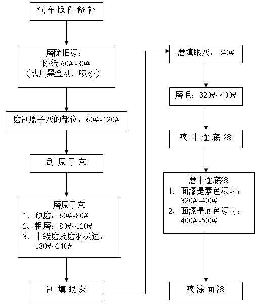 汽車修補干磨程序及砂紙的選擇 備注: 1、除舊漆時采用黑金剛配除漆除銹機能夠快速地除去平面、狹縫及凹凸不平表面的舊漆與銹漬;采用噴砂槍噴砂還可以很快地去除某些孔隙、縫隙或手都很難伸進去的部位的舊漆與銹斑; 2、在磨填眼灰、中途底漆和尤其有邊角位、弧度位的表面時配打磨緩沖墊(置于圓盤砂紙和托盤之間)能夠使打磨作業(yè)更加順暢,并能獲得規(guī)則的表面質(zhì)量。 2007-08-25 12237