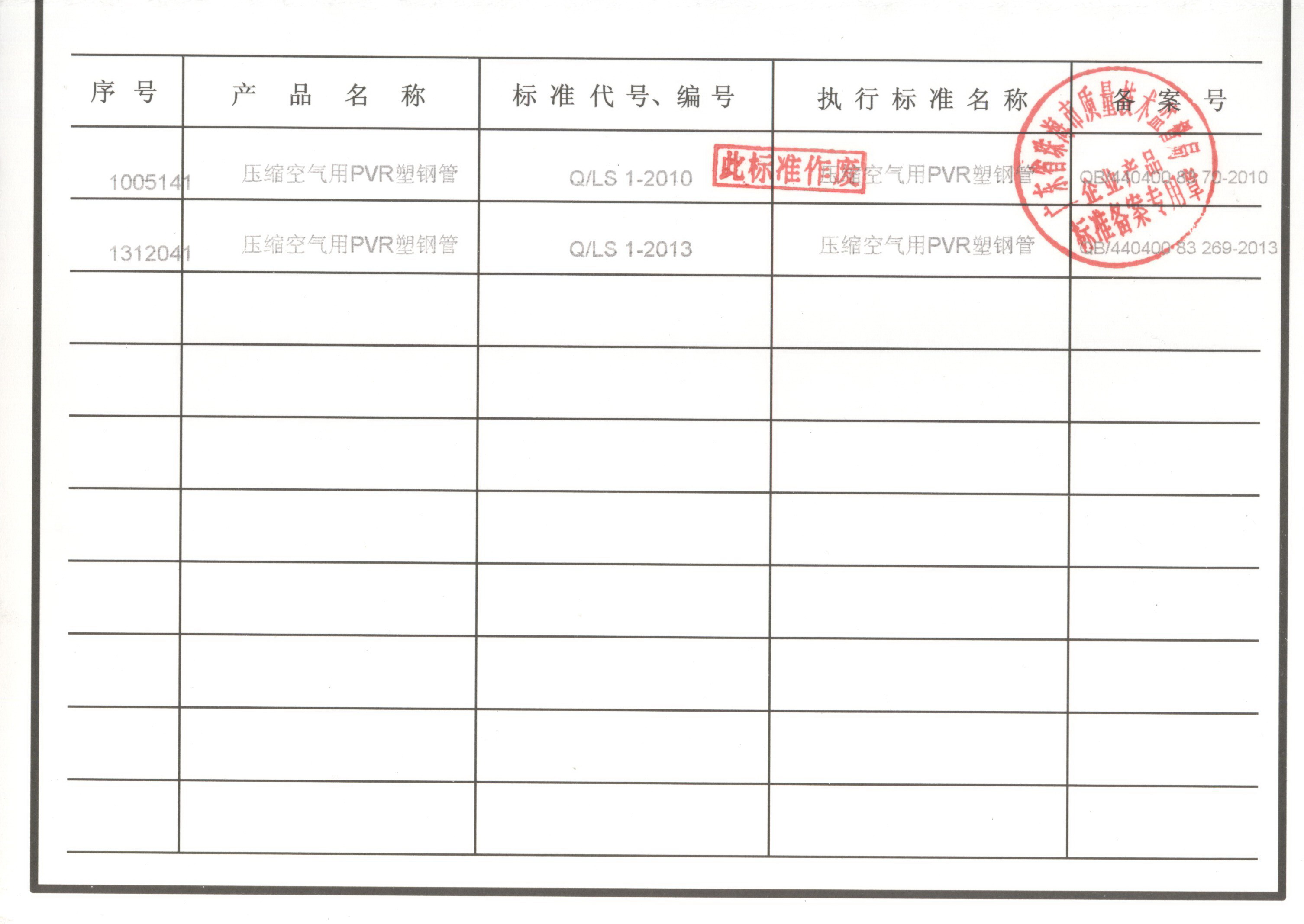 珠海市企業產品執行標準證書