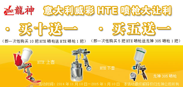 2、買五送一(即一次購買五把HTE噴槍送一把龍神305噴槍)