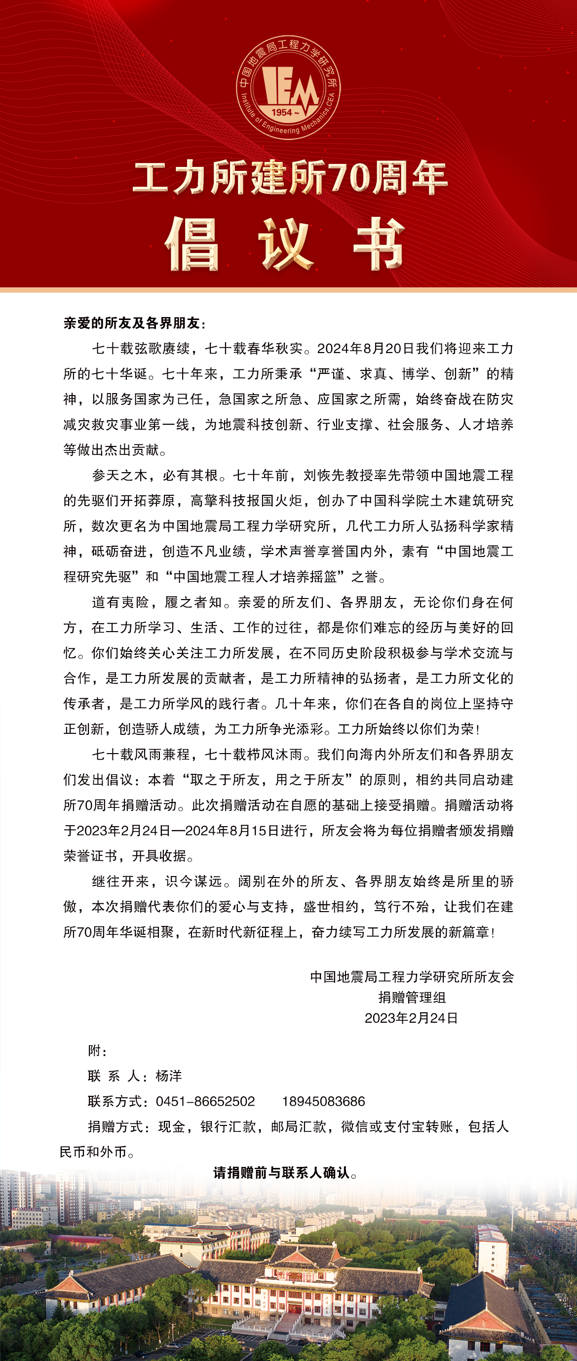 工力所建所70周年倡議書