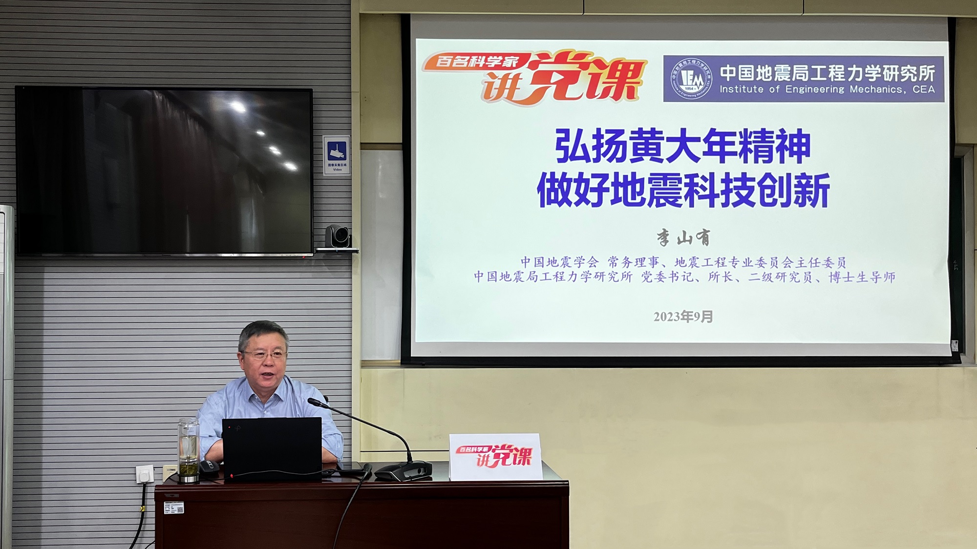 發(fā)布時(shí)間: 2023-09-15 點(diǎn)擊數(shù)量:9744為有效發(fā)揮中國(guó)科協(xié)黨校全國(guó)學(xué)會(huì)分校政治引領(lǐng)“主陣地”、黨性錘煉“大熔爐”作用,中國(guó)科協(xié)科技社團(tuán)黨委組織開(kāi)展了“百名科學(xué)家講黨課”活動(dòng)。受中國(guó)地震學(xué)會(huì)邀請(qǐng),9月14日,中國(guó)地震學(xué)會(huì)常務(wù)理事、地震工程專業(yè)委員會(huì)主任委員,我所黨委書(shū)記、所長(zhǎng)李山有同志以《弘揚(yáng)黃大年精神 做好地震科技創(chuàng)新》為題為所辦計(jì)財(cái)黨支部、工程地震研究中心黨支部及碩士研究生第二黨支部講授專題黨課。