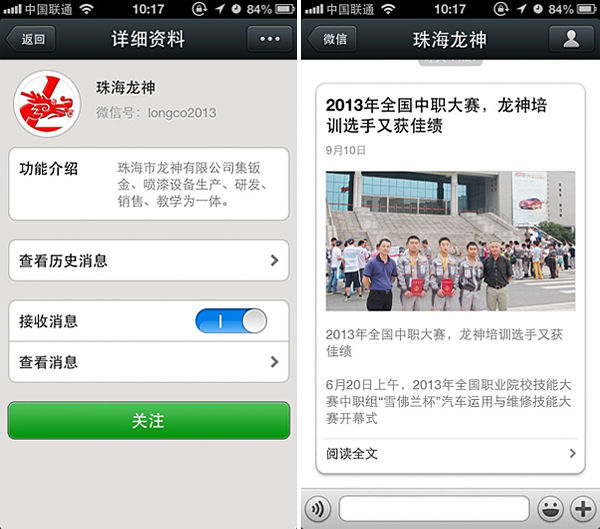 珠海龍神官方微信敬請關注! 珠海市龍神有限公司公共微信號已申請成功,請大家多多關注! 掃描二維碼,也可直接搜索公眾微信號“珠海龍神” 我們將不定期發布公司最新資訊。 您也可以發消息和我們進行互動。 查看歷史消息收看您錯過的動態新聞,讓您第一手掌握最新動態。 2013-09-18 16528