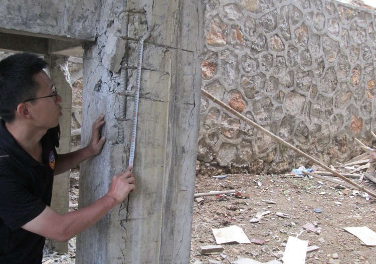 用尺子測量鋼筋混凝土結(jié)構(gòu)構(gòu)件破壞位置的鋼筋直徑、間距和混凝土保護(hù)層厚度、裂縫寬度,測量房屋的樓層變形,拍照留存……林旭川和科研人員們對每一處破損的房屋都不放過,以獲取量化的結(jié)構(gòu)參數(shù)與破壞特征參數(shù)。