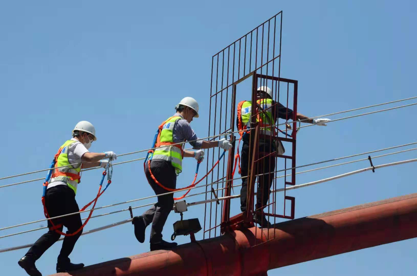 林旭川(中)攀登主纜考察橋梁服役狀態(tài)