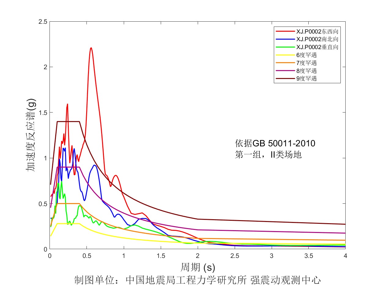 圖5 XJ. P0002臺加速度反應(yīng)譜圖