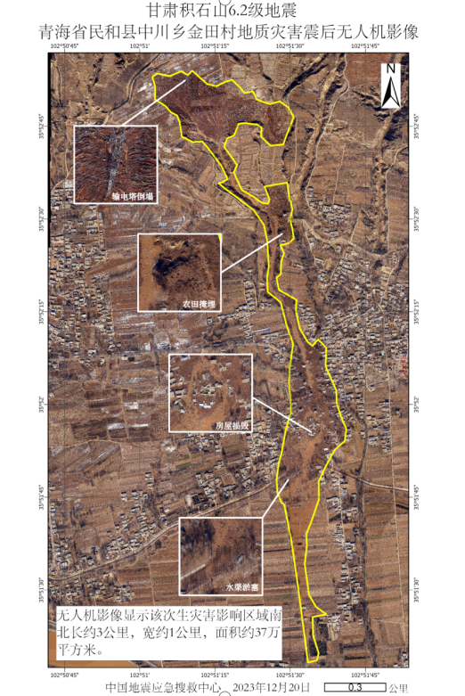 發布時間: 2023-12-25 點擊數量:69492023年12月18日23時59分,甘肅省臨夏積石山縣發生6.2級地震。此次地震已造成部分房屋損毀甚至倒塌,并由此造成人員傷亡。除房屋倒塌外,此次地震在青海省海東市民和縣中川鄉金田村和草灘村引發了被稱之為“砂涌”的特殊現象,區域內部分房屋被厚達數米的流滑土壤掩埋(圖1)。