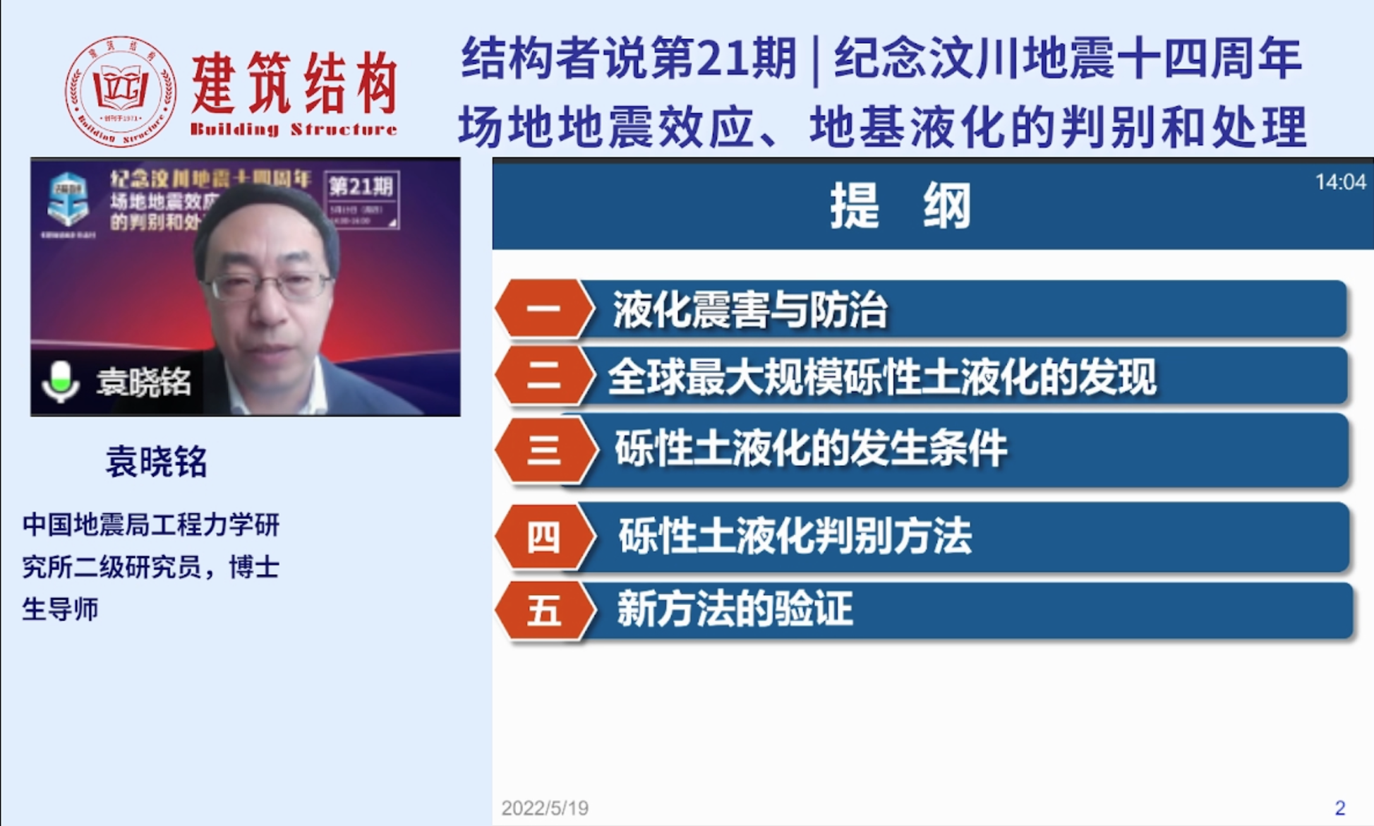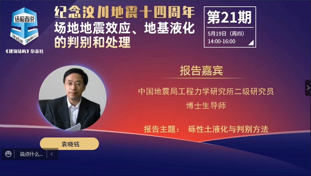 發布時間: 2022-05-24 點擊數量:4733袁曉銘研究員的報告中,介紹了2008年汶川大地震中發生的全球最大規模的礫性土液化及震害現象,解釋了礫性土液化的機理和觸發條件;介紹了具有中國特色的礫性土液化判別方法以及通過國際合作對新方法的驗證結果。報告面向一線工程技術人員,采用深入淺出的方式進行講解,受到工程技術人員的歡迎。報告后的互動提問環節,袁曉銘研究員在線回答了聽眾提出的關于“學校和醫院提高一度進行液化設防的必要性”、“礫性土和砂土液化判別方法的差別”、“不液化和不考慮液化概念的區別”等一系列問題。